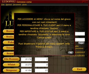 Per accedere a Ludopoli è necessario registrarsi sul sito. Puoi mandare messaggi a tutti gli utenti di Ludopoli selezionandoli dalla lista di utenti collegati (sono sempre tanti). Per andare a giocare ad un tavolo basta cliccarci due volte, e Ludopoli ti ricorda sempre quali sono i comandi principali che ti serviranno (per non farti mai trovare impreparato). Durante i nostri test le partite sono state sempre veloci e divertenti.
